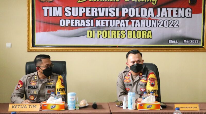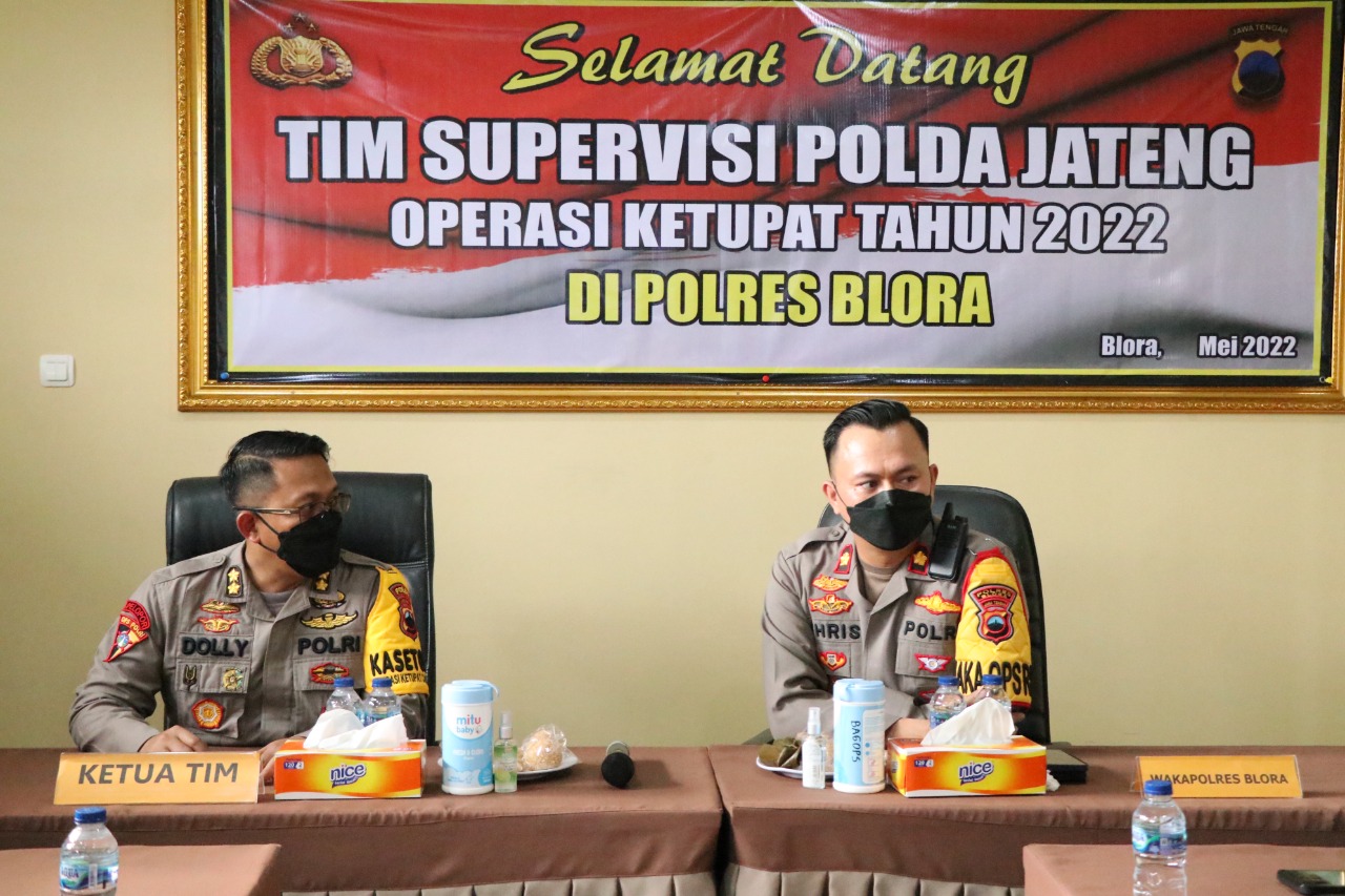 Tim Supervisi dipimpin oleh Ketua Tim AKBP Dolly A. Primanto diterima oleh Kapolres Blora AKBP Aan Hardiansyah yang diwakili oleh Wakapolres Kompol Christian Chrisye Lolowang beserta Pejabat Operasi Ketupat Candi 2022 Polres Blora.