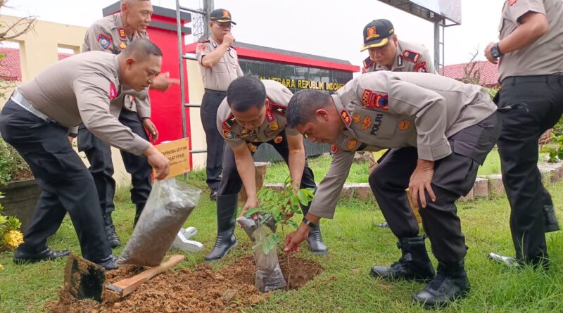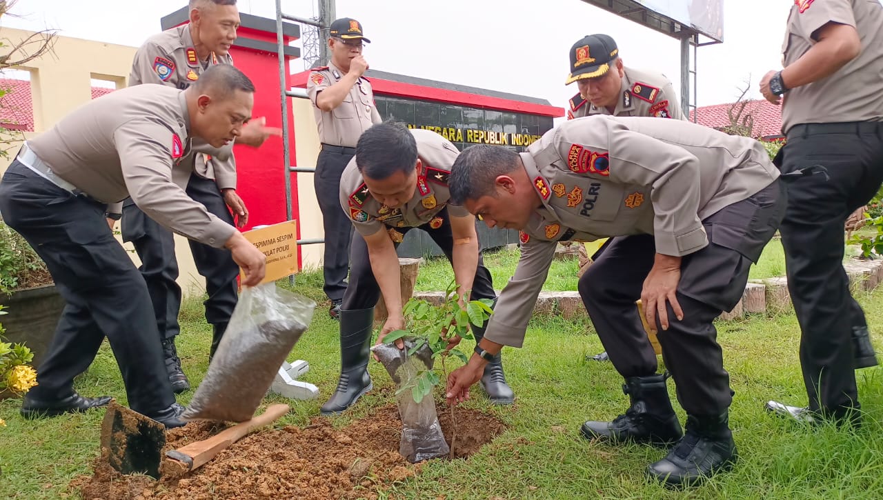 Brigjen Pol Mardiyono,SIK,M.Si mengungkapkan bahwa kegiatan ini sekaligus untuk mendukung penghijauan dan ketahanan pangan karena yang ditanam adalah jenis pohon buah.