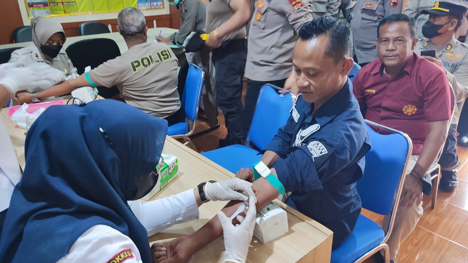 Polres Blora Polda Jawa Tengah |Untuk menjaga kesehatan dan kebugaran anggotanya dalam melaksanakan tugas, Kapolres Blora Polda Jawa Tengah AKBP Fahrurozi,SIK,MM,MH menginstruksikan Sidokkes untuk memberikan suntikan vitamin C kepada anggota Polres Blora, Kamis, (08/12/2022).