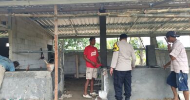 “Kita laksanakan pengecekan terhadap peternak di wilayah binaan sekaligus mengingatkan agar mewaspadai penularan PMK, apabila ditemukan ciri-ciri klinis adanya hewan ternak yang terkena PMK segera melapor untuk mendapatkan penanganan lebih lanjut,” pesan Bhabinkamtibmas kepada peternak.