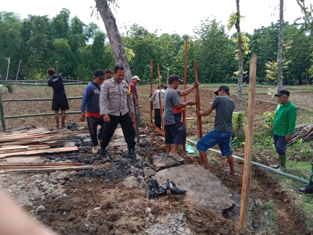 Bhabinkamtibmas Polres Blora Bersama Babinsa Gotong Royong Bersama Warga Bangun Lokasi Pembuangan Sampah