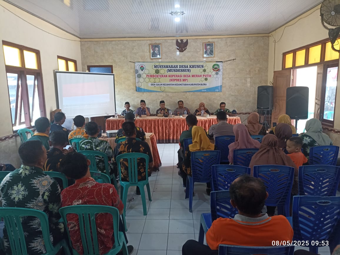 Blora, 8 Mei 2025 – Bhabinkamtibmas Polres Blora menghadiri rapat koordinasi (Rakor) di Balai Desa Galuk, Kecamatan Kedungtuban, Kabupaten Blora, pada Kamis (8/5/2025) pukul 09.30 WIB hingga selesai. Acara ini menjadi wadah musyawarah desa khusus (Musdessus) untuk membahas pembentukan Koperasi Merah Putih, reorganisasi Badan Usaha Milik Desa (BUMDes) Galuk, serta penetapan Indeks Desa Galuk. Kehadiran Bhabinkamtibmas menunjukkan dukungan Polres Blora dalam memperkuat pemberdayaan ekonomi masyarakat desa.