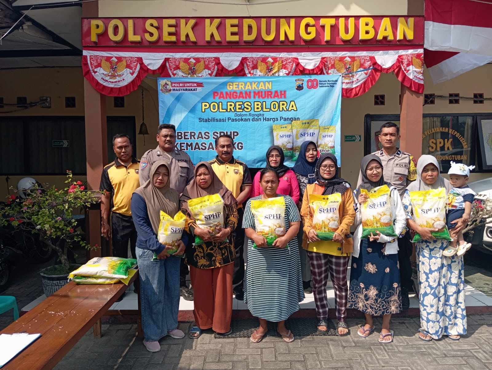 Beras SPHP sebanyak 1 ton tersebut disalurkan dalam kemasan 5 kilogram per karung dengan harga jual Rp11.000 per kilogram. Penyaluran yang dimulai pukul 09.30 WIB ini dipimpin langsung oleh Kapolsek Kedungtuban Iptu Hadi Setyo P., S.H., didampingi Ketua Bhayangkari Ranting Kedungtuban, Ka Sium Aipda Maslihar, S.E., dan Kanit Intelkam Bripka Fatoni H.