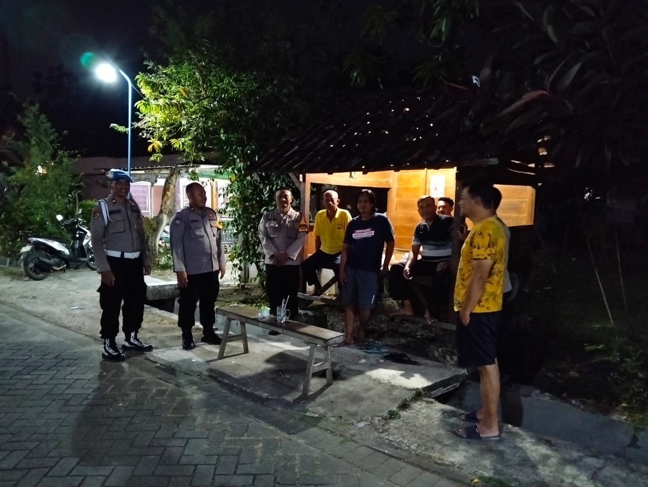 ​Dalam kegiatan ini, tim dari Polsek Blora yang terdiri dari Aiptu Achid W., Aiptu Joni P., S.H., Aipda Teguh Y., Aipda Agus W., S.E., dan Aipda Kukuh Arif, berinteraksi langsung dengan warga yang sedang bertugas ronda malam. Tujuan dari sambang Poskamling ini adalah untuk mempererat hubungan antara polisi dan masyarakat, sekaligus memastikan sistem keamanan lingkungan berjalan dengan baik.