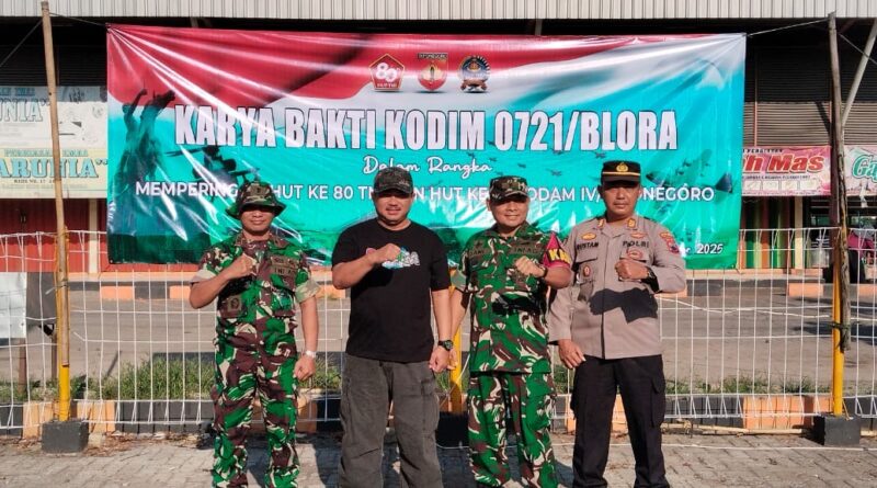 Dalam rangka memperingati HUT ke-80 TNI dan HUT ke-75 Kodam IV/Diponegoro Tahun 2025, Kodim 0721/Blora menggelar apel dan karya bakti di lingkungan Pasar Induk Sido Makmur Blora, Sabtu (20/9/2025).