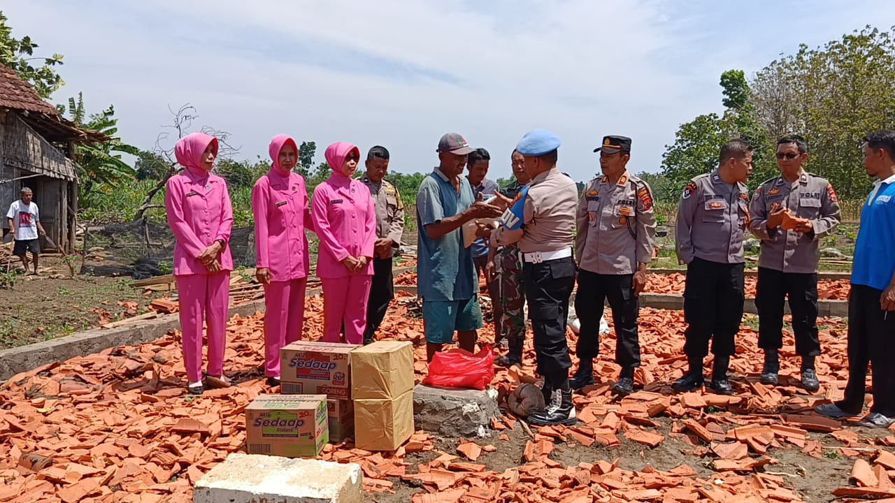 Polsek Tunjungan dan Bhayangkari memberikan tali asih berupa paket sembako yang berisi beras, minyak, dan mie instan, serta bergotong royong membantu membersihkan dan mengevakuasi material rumah yang roboh tersebut.