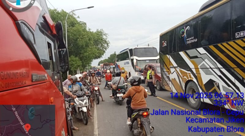 Kecelakaan lalu lintas serius terjadi di jalur nasional Blora–Cepu, tepatnya di Desa Jiken, Kecamatan Jiken, Kabupaten Blora, pada Jumat (14/11/2025) pagi. Sebuah mobil Dump Truk Mitsubishi bermuatan batu bara ringsek parah di bagian kabin setelah “adu banteng” dengan Bus Hino.