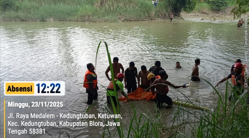 BLORA – Seorang santri bernama Muhammat Rofiq (15), asal Ngawi, Jawa Timur, dilaporkan tewas tenggelam di Sungai Kracakan, Desa Ketuwan, Kecamatan Kedungtuban, Kabupaten Blora pada Minggu (23/11/2025). Korban yang merupakan santri dari Pondok Pesantren Roudlutul Iman tersebut ditemukan meninggal dunia setelah tim gabungan melakukan pencarian selama kurang lebih tiga jam.