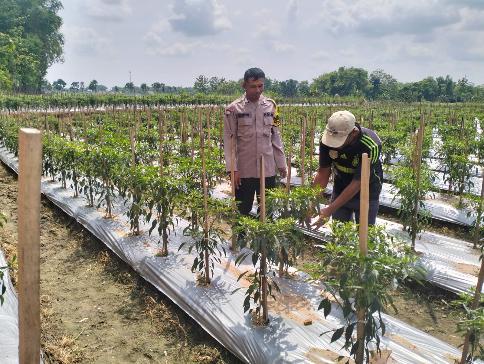 Sambang Petani Cabai, Bhabinkamtibmas Polres Blora Ingatkan Warga Balong Waspada Bencana dan Hoax