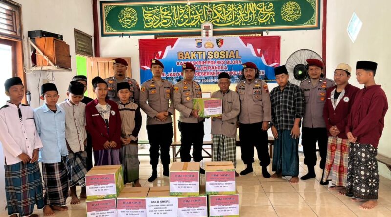 BLORA – Satuan Reserse Kriminal (Satreskrim) Polres Blora menunjukkan sisi humanisnya dengan menggelar Bakti Sosial (Baksos) Pembagian Sembako di wilayah Kecamatan Kunduran, Kabupaten Blora, pada Sabtu (6/12/2025). Kegiatan ini dilaksanakan dalam rangka memperingati Hari Jadi Fungsi Reserse Polri yang ke-78 sekaligus mendukung pelaksanaan transformasi Polri menuju institusi yang lebih presisi dan humanis.