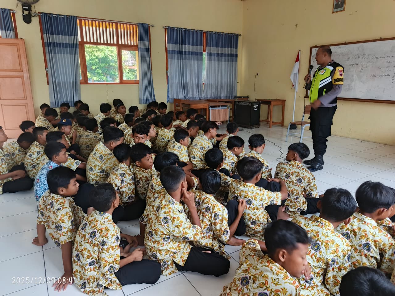BLORA, EDUKASI — Dalam upaya memastikan keselamatan dan keamanan siswa, Bhabinkamtibmas Desa Jeruk dan Desa Kadengan, Aipda Fahrudin, S.H., dari Polsek Randublatung melaksanakan kegiatan sambang dan tatap muka di Aula SMPN 2 Randublatung, Desa Jeruk, pada Selasa (09/12/2025) pagi. Kegiatan ini dilakukan menjelang keberangkatan 120 siswa kelas VII dan VIII yang akan mengikuti study tour ke Yogyakarta.