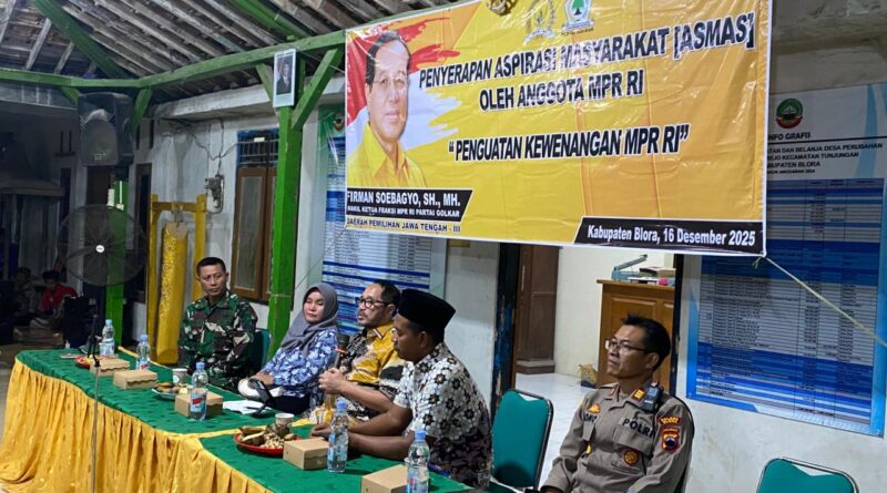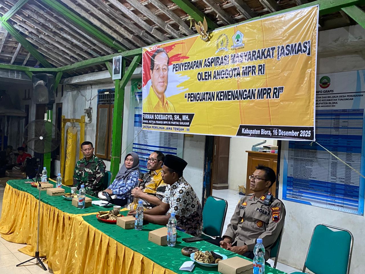 BLORA – Bertempat di Balai Desa Gempolrejo, Kecamatan Tunjungan, jajaran Polsek Tunjungan Polres Blora melaksanakan pengamanan kegiatan Penyerapan Aspirasi Masyarakat (Asmas) oleh Wakil Ketua Fraksi MPR RI dari Partai Golkar Dapil III Jawa Tengah, Bapak Firman Soebagyo, S.E., M.H., Senin malam (15/12/2025).