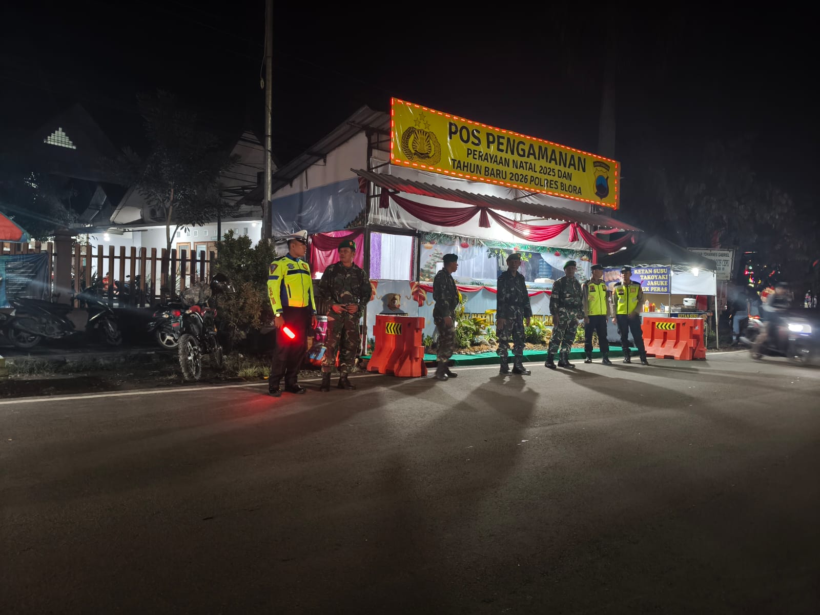CEPU – Menjelang puncak peringatan Natal 2025, jajaran Polres Blora terus meningkatkan intensitas pengamanan di sejumlah gereja prioritas. Personel yang tergabung dalam Pos Pam Gereja Willibrordus Cepu melakukan pemantauan ketat serta pengaturan arus lalu lintas guna memastikan situasi kamtibmas tetap terkendali, Selasa (23/12/2025) malam.