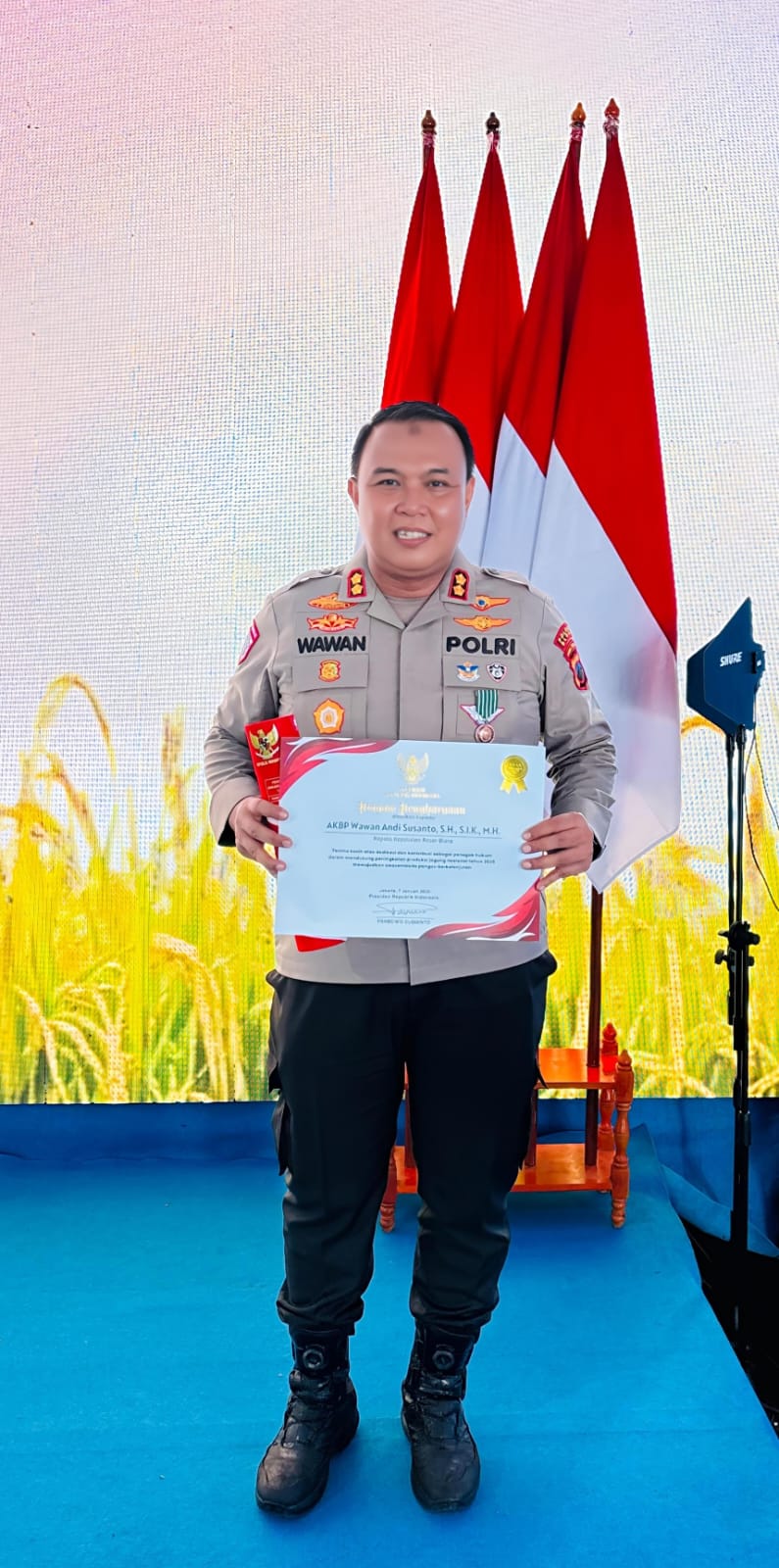 “Alhamdulillah, penghargaan ini kami persembahkan untuk seluruh masyarakat Blora. Capaian produksi 455 ribu ton lebih dengan provitas 57,66 kuintal per hektare ini membuktikan bahwa stabilitas keamanan berbanding lurus dengan produktivitas pangan nasional,” ujar AKBP Wawan Andi Susanto.