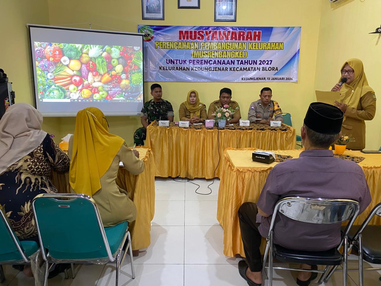 *BLORA* – Sinergitas antara aparat keamanan dan pemerintah kelurahan terus diperkuat dalam upaya menyukseskan pembangunan daerah. Hal ini terlihat saat Bhabinkamtibmas Kelurahan Kedungjenar Polsek Blora, Aipda Ragil Nanang Wibowo, S.H., bersama Babinsa Serka Ganang menghadiri Musyawarah Perencanaan Pembangunan Kelurahan (Musrenbangkel) untuk perencanaan tahun 2027 di Ruang Pertemuan Kelurahan Kedungjenar, Selasa (13/1/2026).