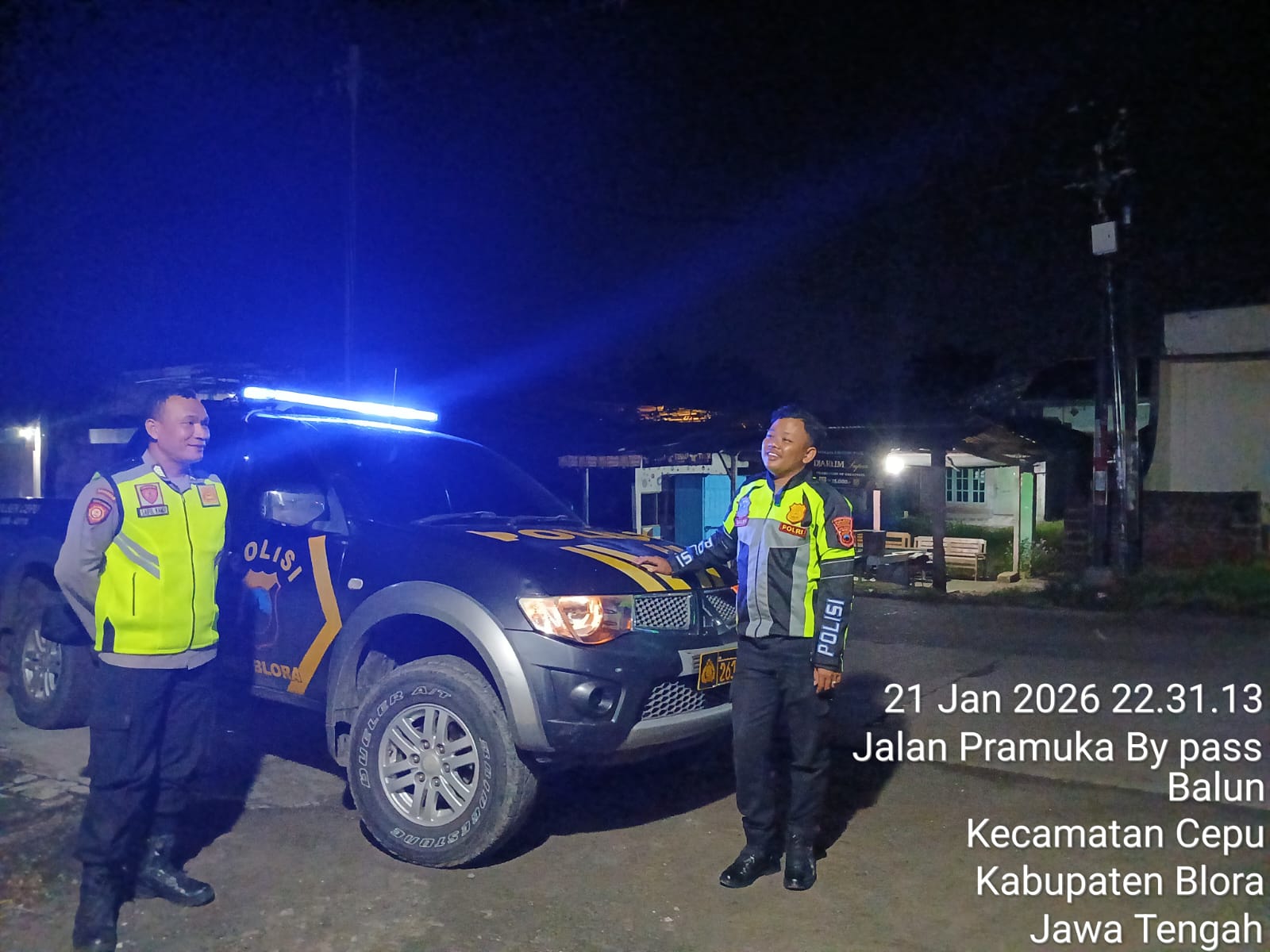 BLORA – Guna menjamin keamanan masyarakat dan mengantisipasi tindak kriminalitas di malam hari, Kepolisian Sektor (Polsek) Cepu Polres Blora meningkatkan intensitas patroli kewilayahan. Kegiatan ini difokuskan pada objek vital, pemukiman penduduk, serta titik-titik rawan gangguan kamtibmas di wilayah Kecamatan Cepu, Rabu (21/1/2026) malam.