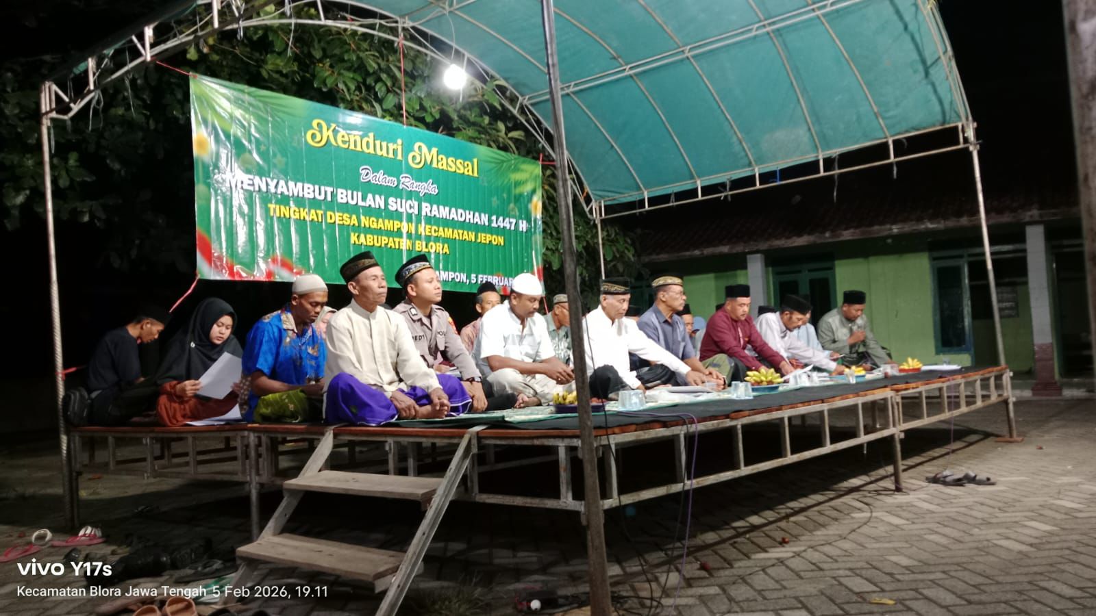 BLORA – Suasana khidmat menyelimuti Desa Ngampon, Kecamatan Jepon, saat warga menggelar tradisi kenduri massal dalam rangka menyambut datangnya bulan suci Ramadan. Kegiatan yang sarat akan nilai budaya dan religius ini dihadiri langsung oleh Bhabinkamtibmas Desa Ngampon, Brigadir Dedy Kurniawan, S.H., bersama Babinsa Koptu Andri, Kamis (05/02/2026) malam.