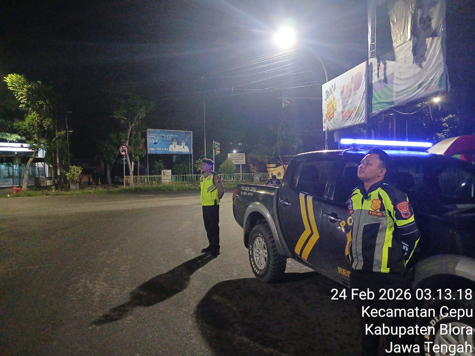 Patroli yang dipimpin oleh Aipda Nyipto, S.H., bersama personel piket fungsi, menyasar sejumlah titik vital di pusat Kota Cepu pada Selasa (24/02/2026) dini hari. Beberapa lokasi yang menjadi fokus penyisiran antara lain sepanjang Jalan Diponegoro, kawasan ikonik Tugu 20 Mei, Simpang Tiga Ketapang, hingga Jalan Surabaya yang berbatasan dengan wilayah luar kota.
