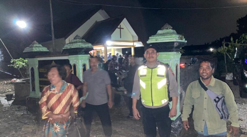 *JAPAH* – Jemaat Gereja Kristen Jawa (GKJ) Japah Pepanthan Gabeng, Desa Pengkolrejo, Kecamatan Japah, Kabupaten Blora, melaksanakan ibadah Sabtu Sunyi dengan khidmat pada Sabtu (04/04/2026) malam. Guna menjamin keamanan selama prosesi ibadah, Personel Polsek Japah diterjunkan langsung ke lokasi untuk melakukan pengamanan.