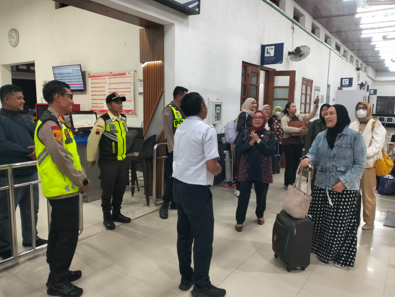 Kapolsek Cepu Kawal Keberangkatan Menteri PPPA RI Arifah Fauzi dari Stasiun Cepu